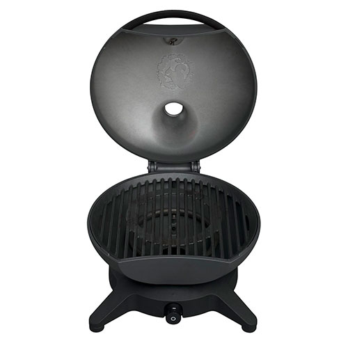This handy grill is 460mm across and has one gas burner with a 3.6kw output. The lid and pan are made from moulded aluminium and the grate from solid cast iron.