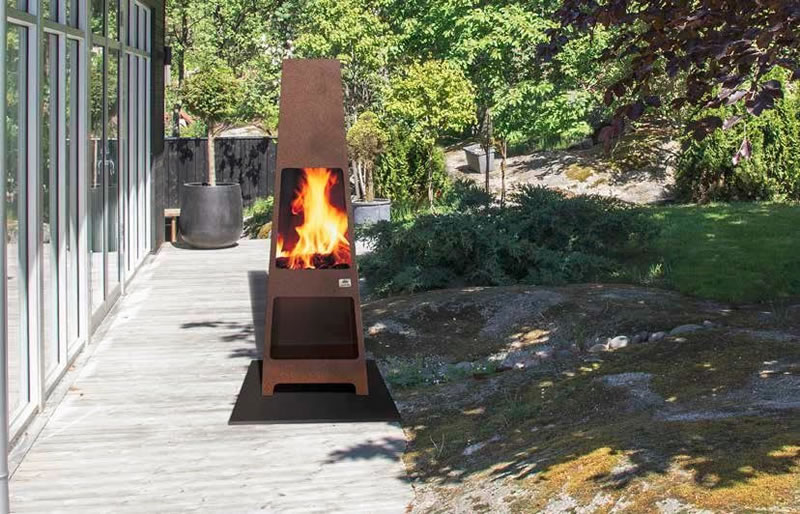 Corten steel corrosion has a protective effect which makes it possible to leave the fireplace outside all year and achieves a “rusty effect”.