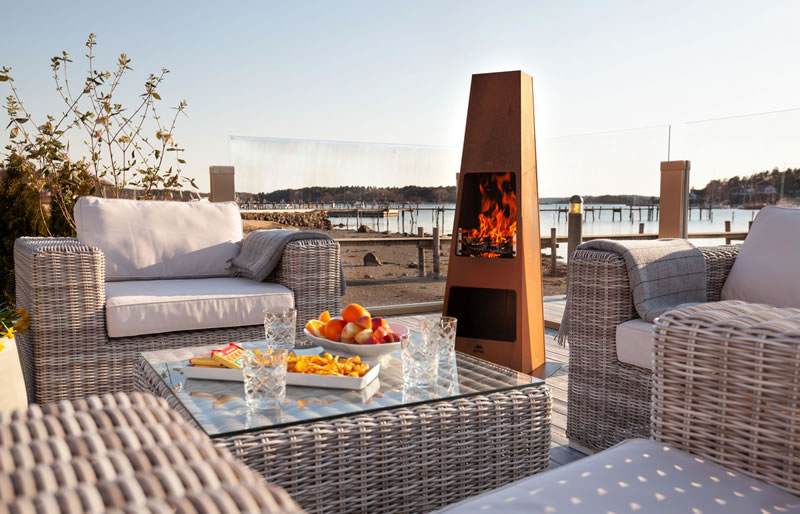 The Jotul Loke creates a warm and cosy mood so that you can spend even longer evenings outside. The Jøtul Loke lets you be close to the open flames with its tall and sturdy design – a robust fireplace that can be left outside during all seasons. It is designed both as a fireplace to provide atmosphere and warmth and to be used for grilling. There is also a base plate available, to protect the surface beneath the fireplace. The Jøtul Loke can be left outside all year round.