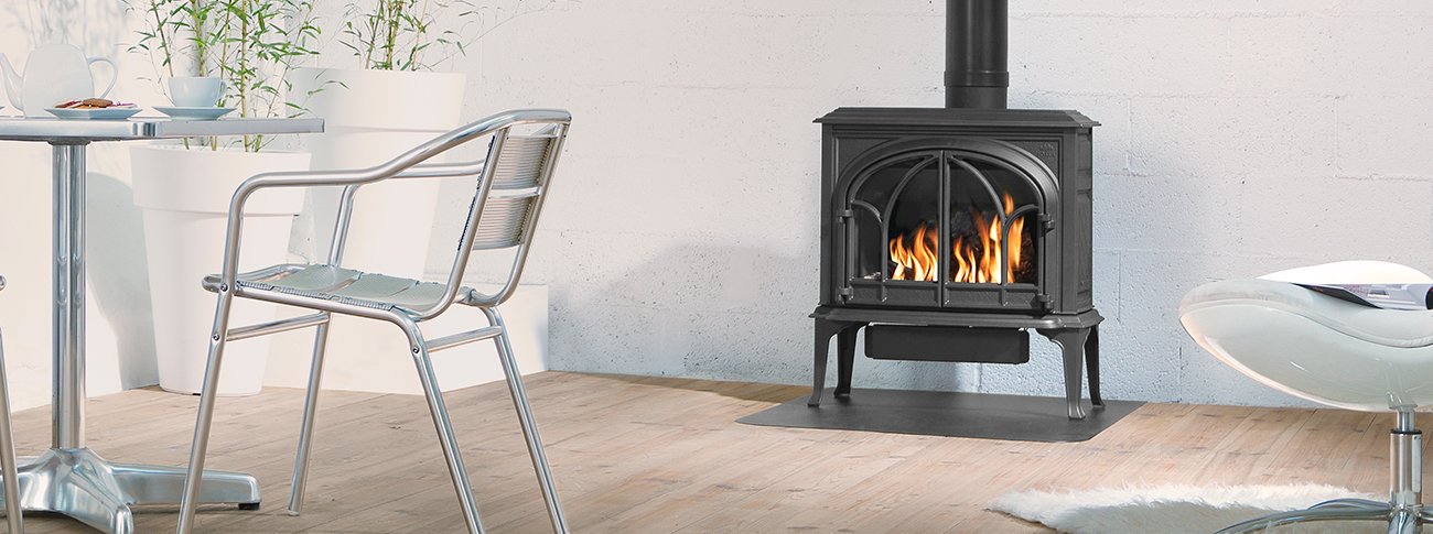 The Jøtul GF 300 BF presents the perfect union of high efficiency and cast iron beauty. Its classic lines and Gothic arch double doors frame a hand crafted log set. Completed with flames and glowing embers that give the Jøtul GF300 BF unrivalled realism within the gas stove industry.