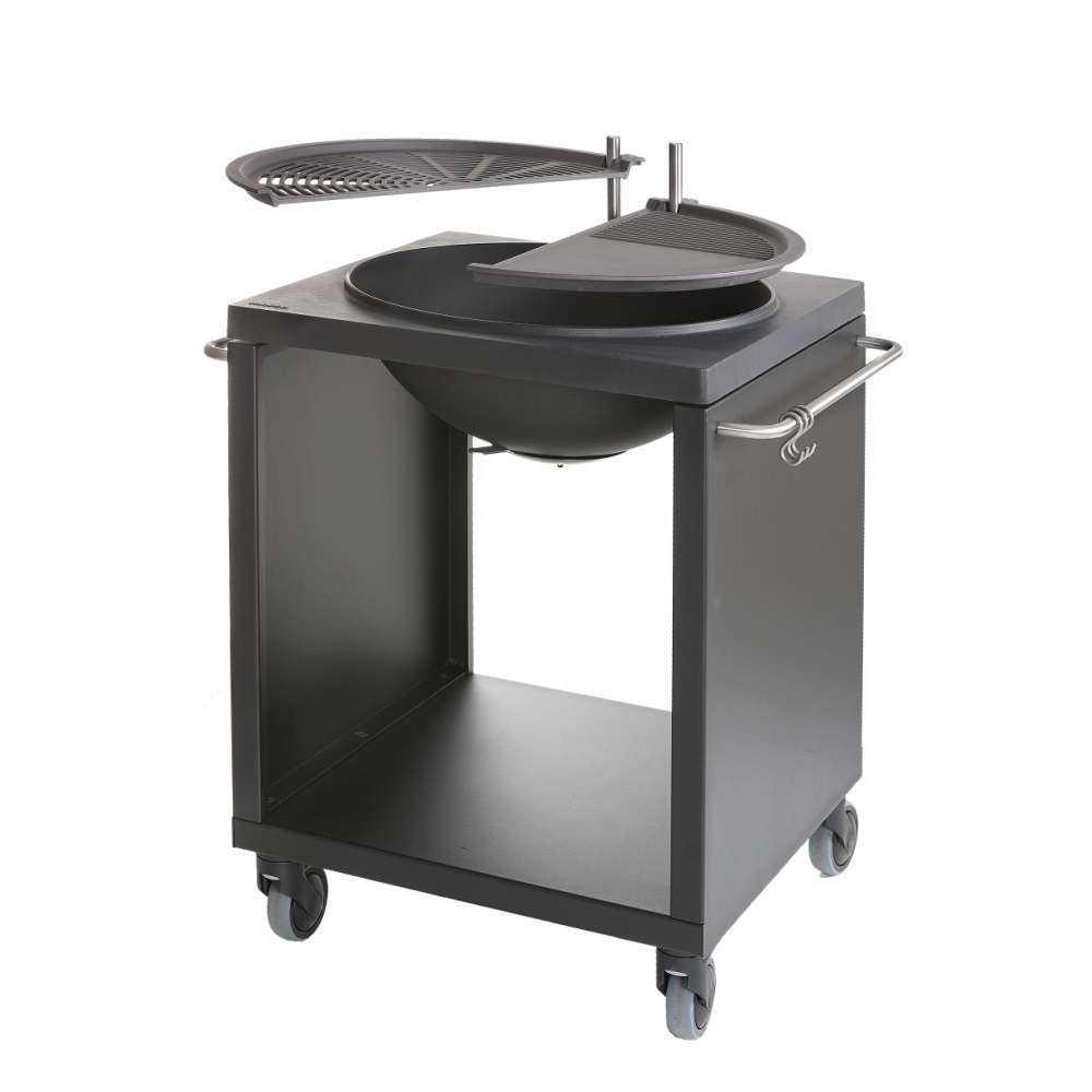 After cooking, the plate and grid are swivelled aside; and now, the ‘bowl’ will function as a decorative open-fire pit – thus securing a cosy and cheerful atmosphere. As long as you have firewood, there will be cheerful company.