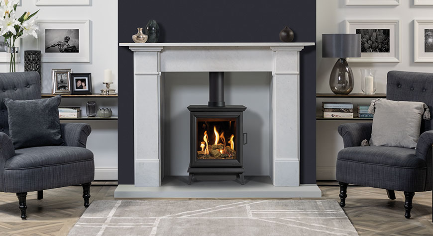 The Gazco Sheraton 5 Gas Stove brings together the traditional aesthetic of the classic wood burner, with the convenience of a gas stove. Beautifully designed, this stove features cast iron bevelling and cornicing to the door, top plate and base, for a quality you can appreciate even when your gas stove is not in use.