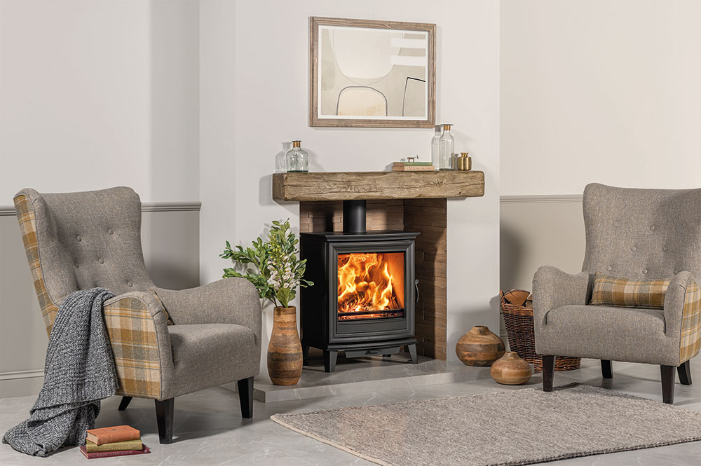 This large format, slimline wood burning and multi-fuel stove is perfect for settings where a shallower depth is required, without sacrificing flame visuals. Broader and taller than the Chesterfield 5, the Chesterfield 5 provides a 5kW heat output and can be selected in wood burning or multi-fuel models.