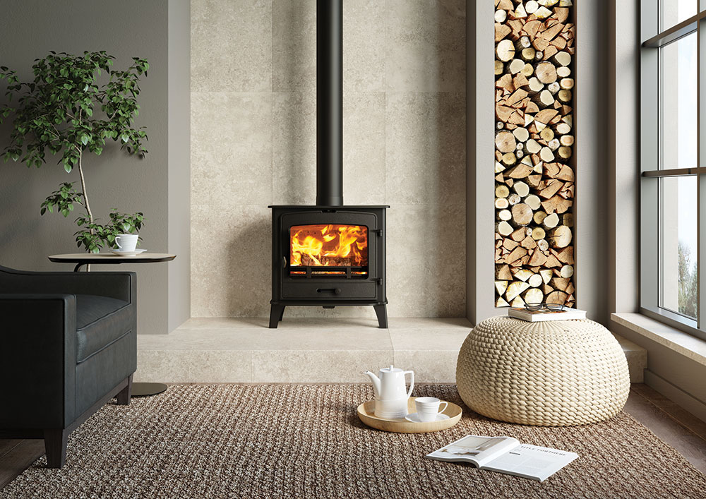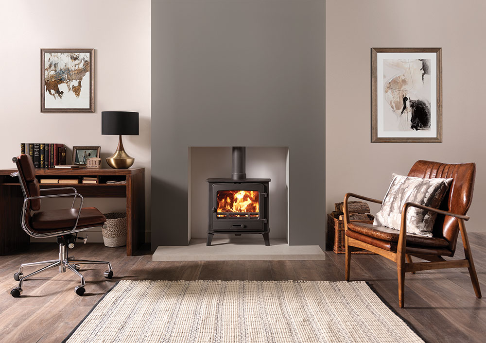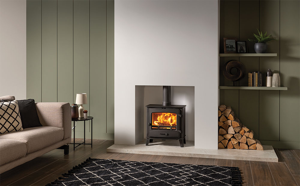 The Stovax County 8 wood burning stove brings presence and impressive flame visuals in equal measure. With an impressive 8kW heat output, the County 8 is a large format stove perfect with enough heat to bring warmth and allure to larger rooms. With a bigger size of stove comes a stunning view of the flames thanks to the wide viewing window, kept clear by powerful Airwash jets. County 8 wood burning stoves are designed to suit both traditional and modern interiors, with a charming and timeless exterior. All County models feature a responsive slide control to adjust airflow for easy heat management, and Cleanburn airflow systems help to minimise emissions. The County 8 is available as a dedicated wood burning stove, which is both Ecodesign Plus and DEFRA exempt as standard, making it suitable for use in Smoke Control Areas.