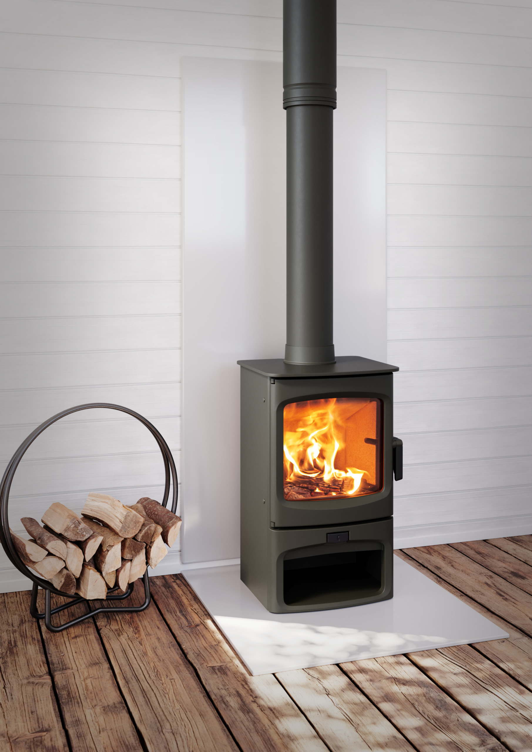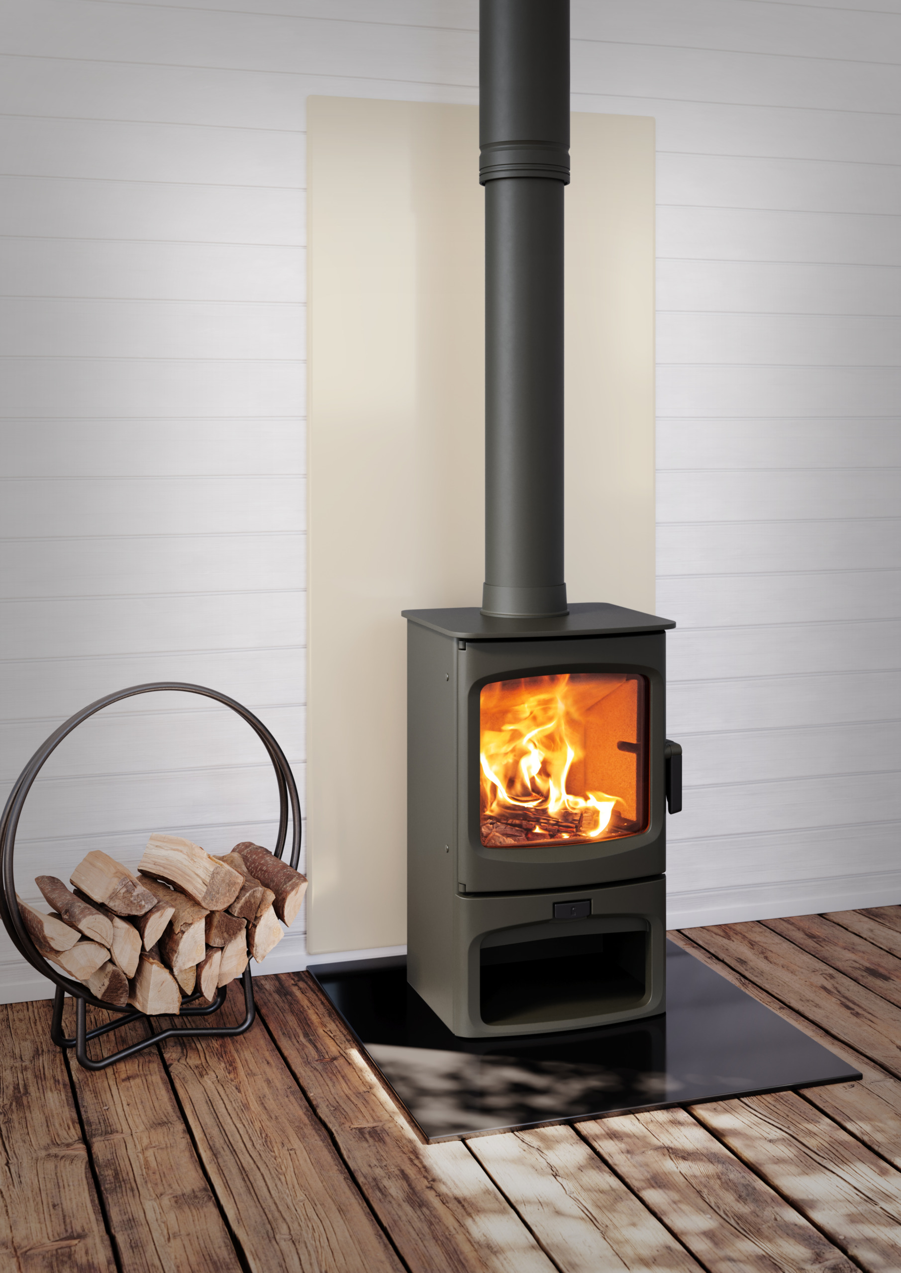 Charnwood Fireside Heat Shields are designed to protect and enhance the wall behind a wood-burning stove creating a modern fireplace.